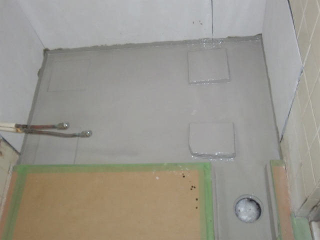 ★解体、浴室側防水工事、壁施工、仕上げ工事★ドア再利用